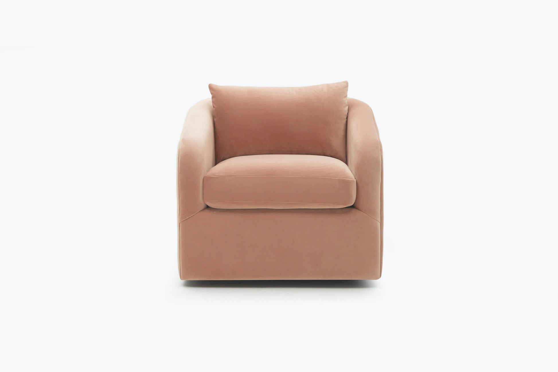 Turn heads with the contemporary charm of the Amelia armchair. Inspired by the swivel arm chairs of the '70s, this chair offers a modern update with its simplified soft arm profile. Whether your decor is traditional or modern, the Amelia effortlessly balances out the style of any space.