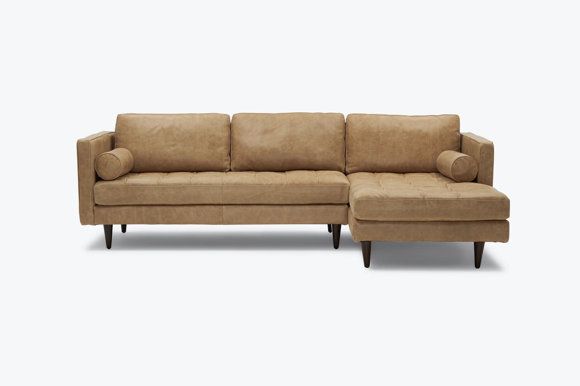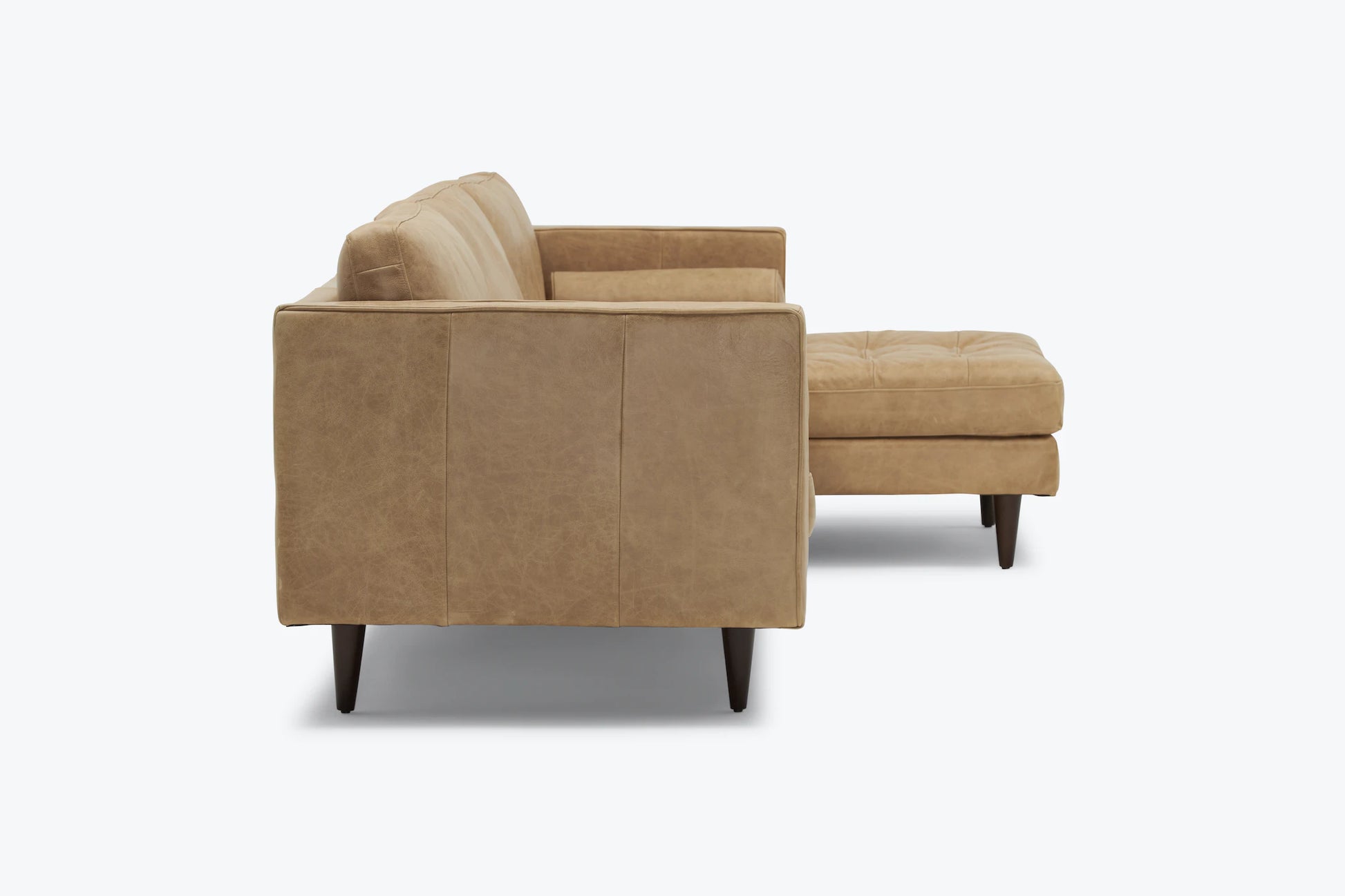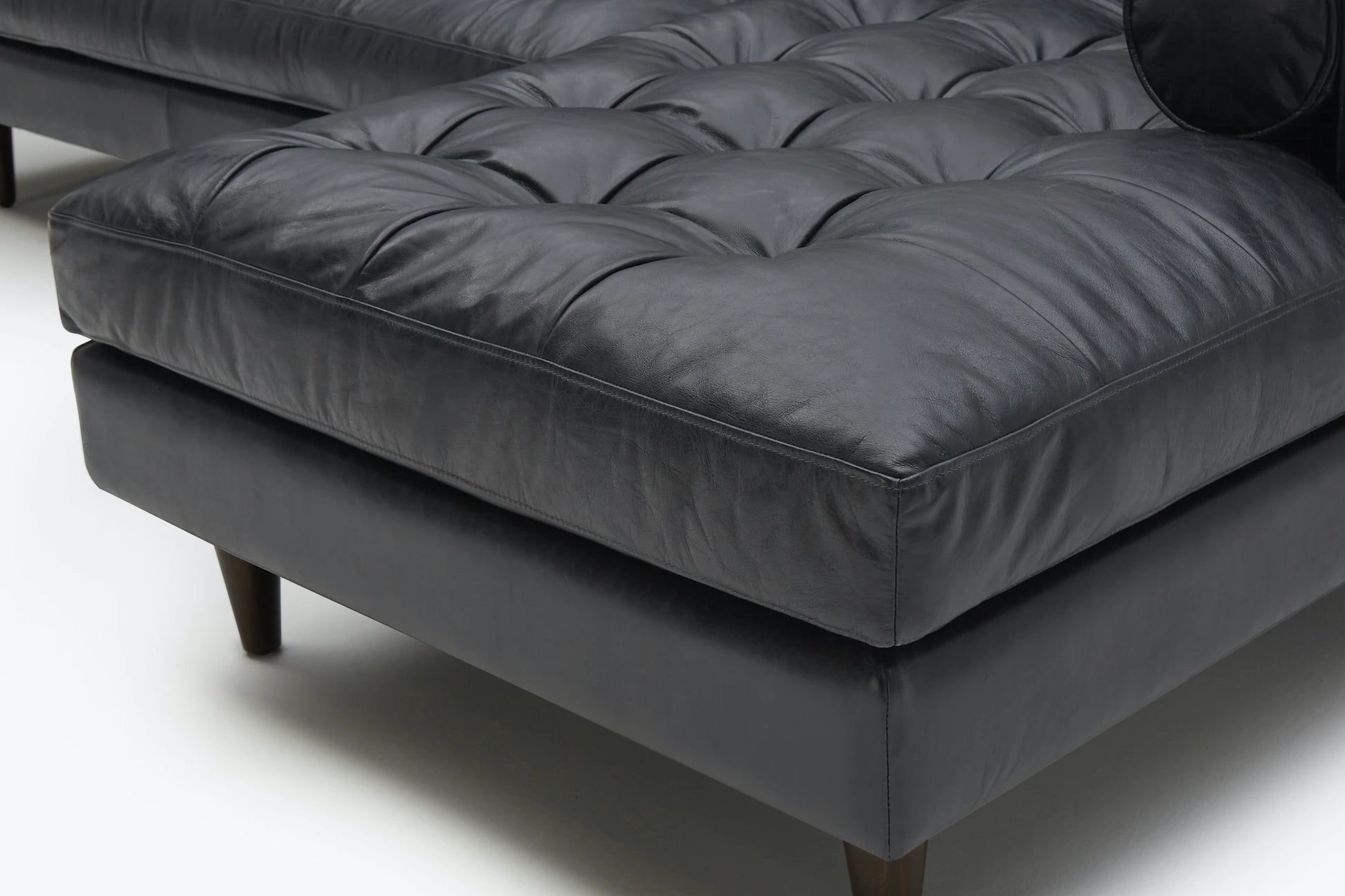 Indulge in the chic and inviting design of the Briar 4 Seater Sectional Sofa for Living Room in Leather Upholstery | Solid Wood Frame. With its deep, boxy silhouette and plush button-tufted seating, this sectional is a feast for the eyes from every angle. Crafted from premium materials, including supple leather, the Briar Sectional is built to withstand the test of time. It's not just a stylish investment, but also a treasured of classic style, supreme comfort, and effortless maintenance. Turn heads and create lasting memories with the Briar Sectional, a statement piece that combines luxury and practicality