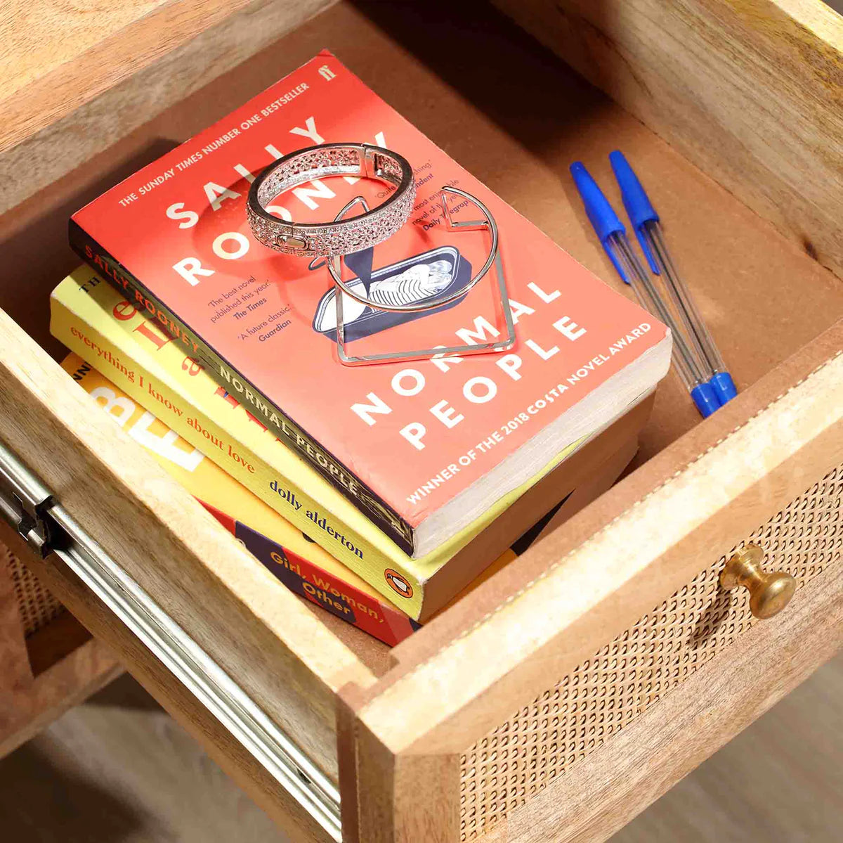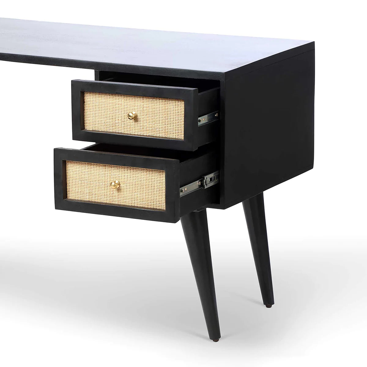 Efficient Storage: Stay organized with two convenient drawers, offering a tidy space for your office essentials. The drawers feature sustainable woven cane for a decorative touch.