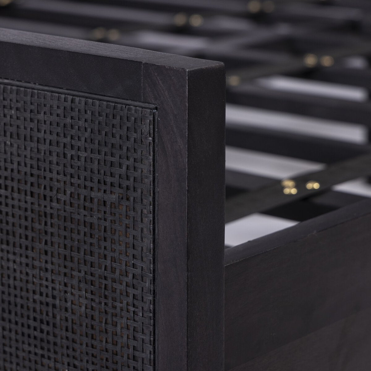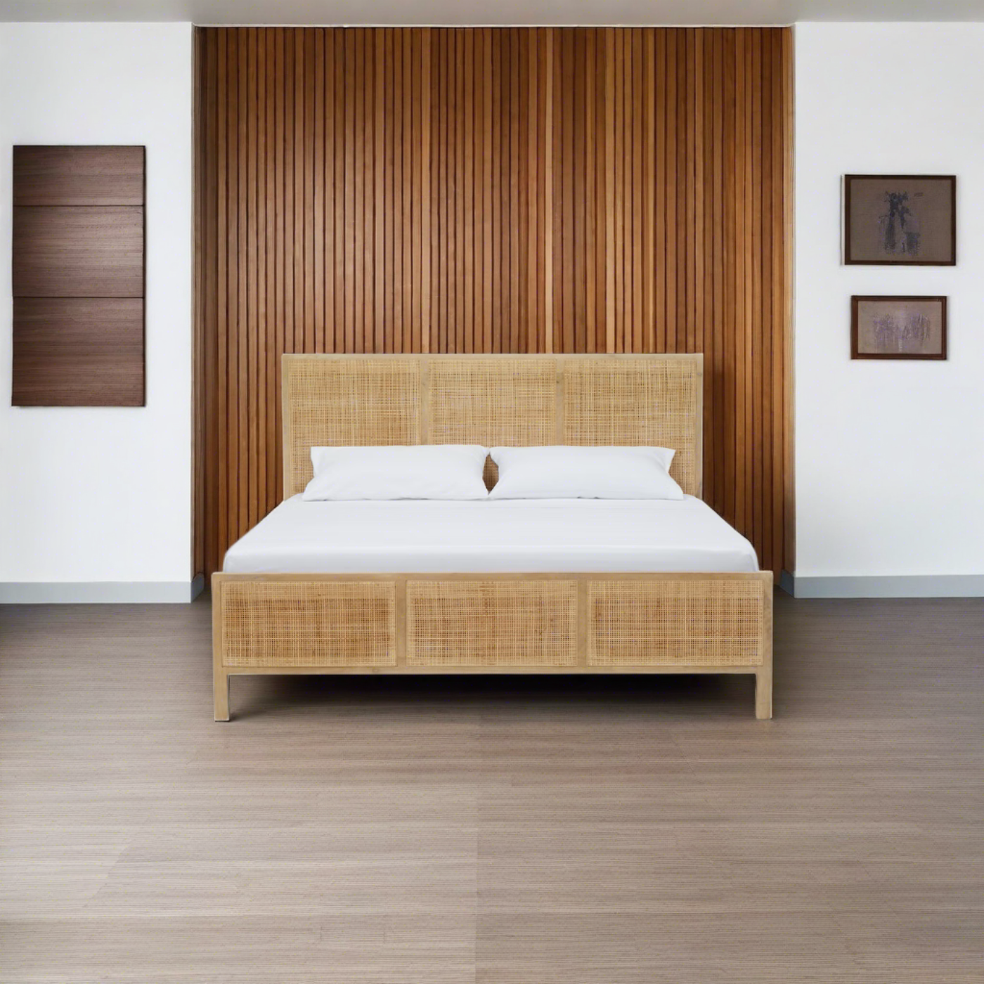 The bed's sturdy wooden frame and beautifully woven rattan headboard provide both comfort and support, ensuring a restful night's sleep. With its timeless design and durable construction, our Rattan Wooden Bed is a worthy investment that will enhance the look and feel of your bedroom for years to come.