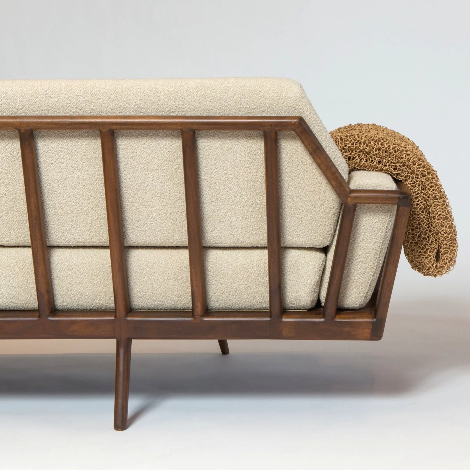 Slat-Back Wooden Sofa with Premium Upholstery