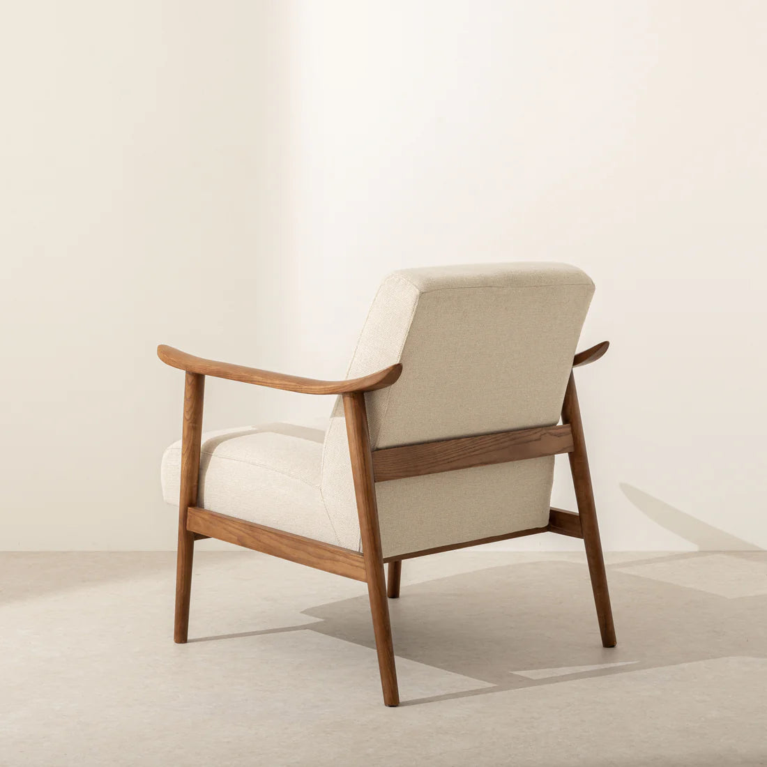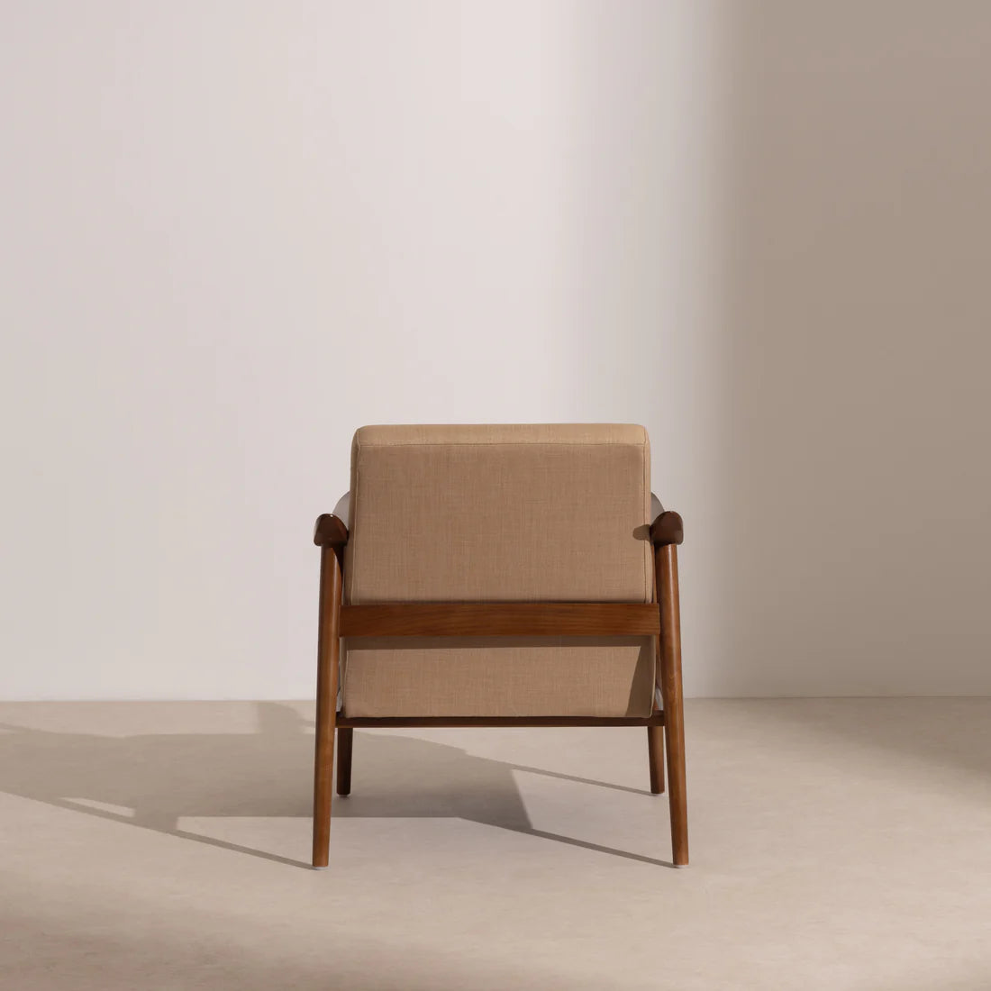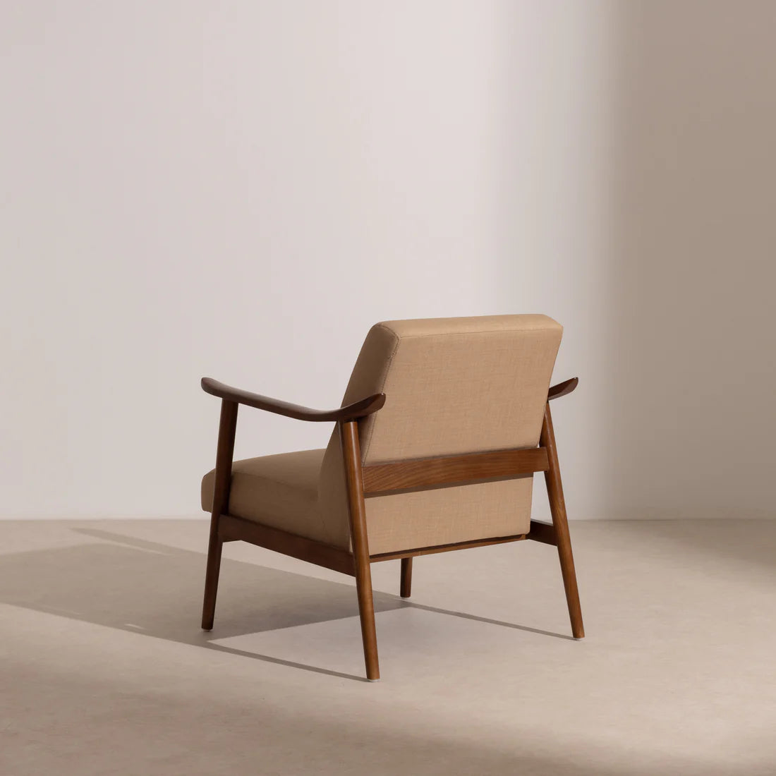 The Winston Armchair seamlessly blends mid-century design with modern elegance. Crafted with a walnut frame and brass accents, it exudes vintage sophistication. The generously sized seat, upholstered in premium fabric, offers both comfort and style. Make a statement in any room with this refined and thoughtfully designed armchair.